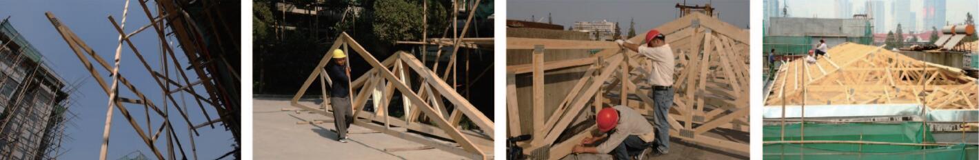 項目中將木桁架屋頂系統、木結構預制墻體系統作為裝配式構件,與新建混凝土裝配式建筑中結合使用。