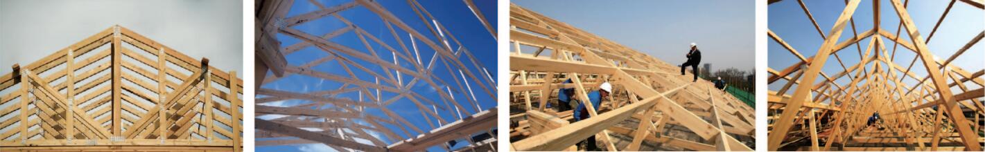 上弦桿與下弦桿:規格材的等級不應小于IIIC;橫截面不小于38mmx89mm;腹桿:任何等級的規格材;截面為38mmx64mm時,規格材等級不應小于IIIC;木基板材:當支撐板的間距大于600mm時,木基結構板厚度不應小于12 mm;齒板:根據《木結構設計規范》GB 50005-2003規定的鍍鋅薄鋼齒板。應符合《碳素結構鋼》GB700的碳素鋼Q235或《低合金高強度結構鋼》GB/T1591高強合金鋼Q345;鍍鋅金屬齒板的鍍鋅量不應小于275g/m2。
